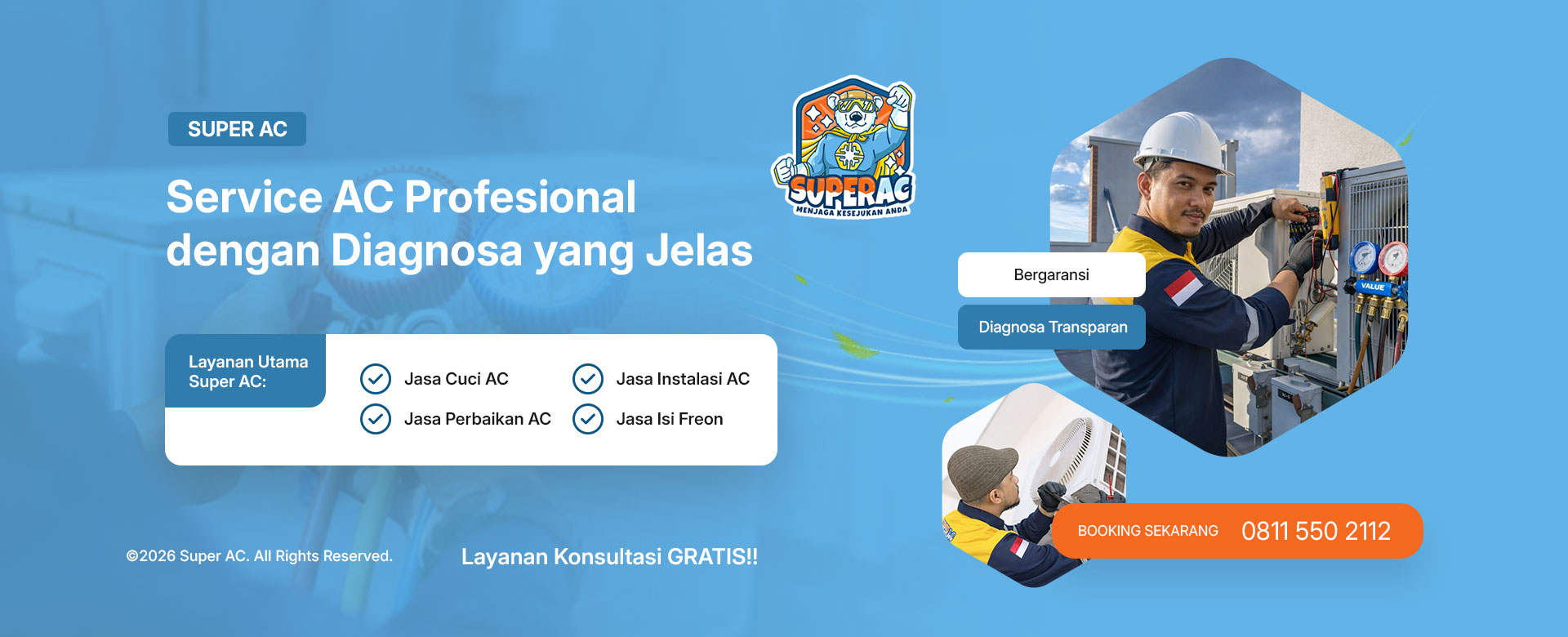 Dengan sistem kerja terstruktur, teknisi terlatih, serta komunikasi yang transparan, Super AC memberikan layanan yang fokus pada penyelesaian masalah secara tepat, efisien, dan bertanggung jawab.